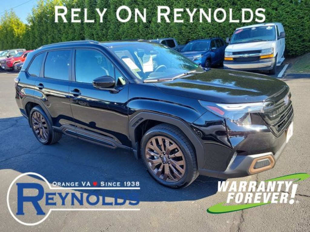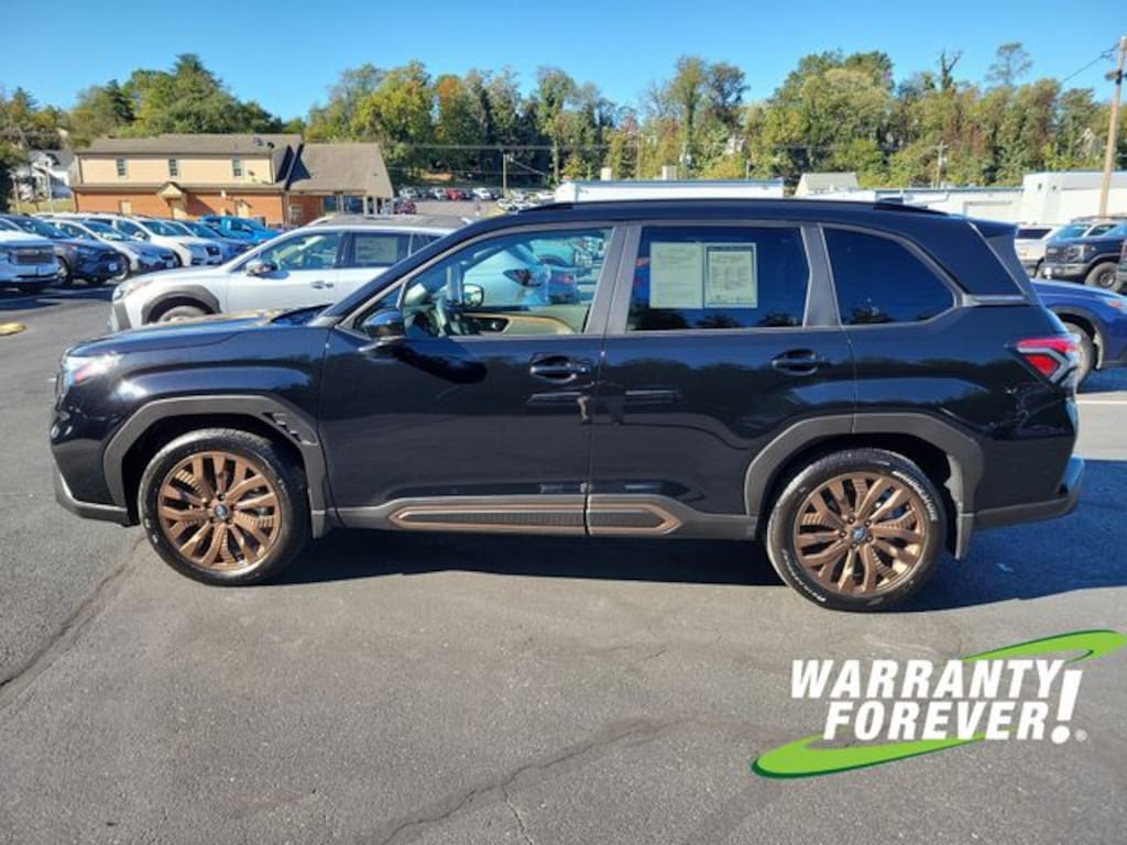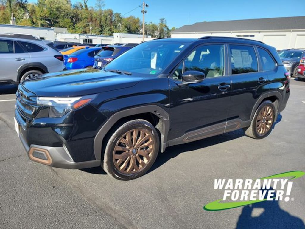 CARFAX One-Owner. Clean CARFAX. Crystal Black Silica 2025 Subaru Forester Sport AWD Lineartronic CVT 2.5L 4-Cylinder DOHC 16V **WARRANTY FOREVER!**, **SUNROOF/MOONROOF**, **ONE OWNER**, ** ACCIDENT FREE CARFAX REPORT **, **STILL UNDER FACTORY WARRANTY**, Completely Detailed, Recent Oil Change, Multi Point Inspection, Forester Sport, 4D Sport Utility, 2.5L 4-Cylinder DOHC 16V, Lineartronic CVT, AWD, Crystal Black Silica, Gray w/Sport StarTex Upholstery, Auto-Dimming Exterior Mirror w/Approach Light, Auto-Dimming Mirror w/Compass & HomeLink, Cargo Tray, harman/kardon Audio & Power Rear Gate & RAB, harman/kardon Speaker System, Popular Package #1, Power Rear Gate, Rear Bumper Cover, Reverse Automatic Braking (RAB) System.