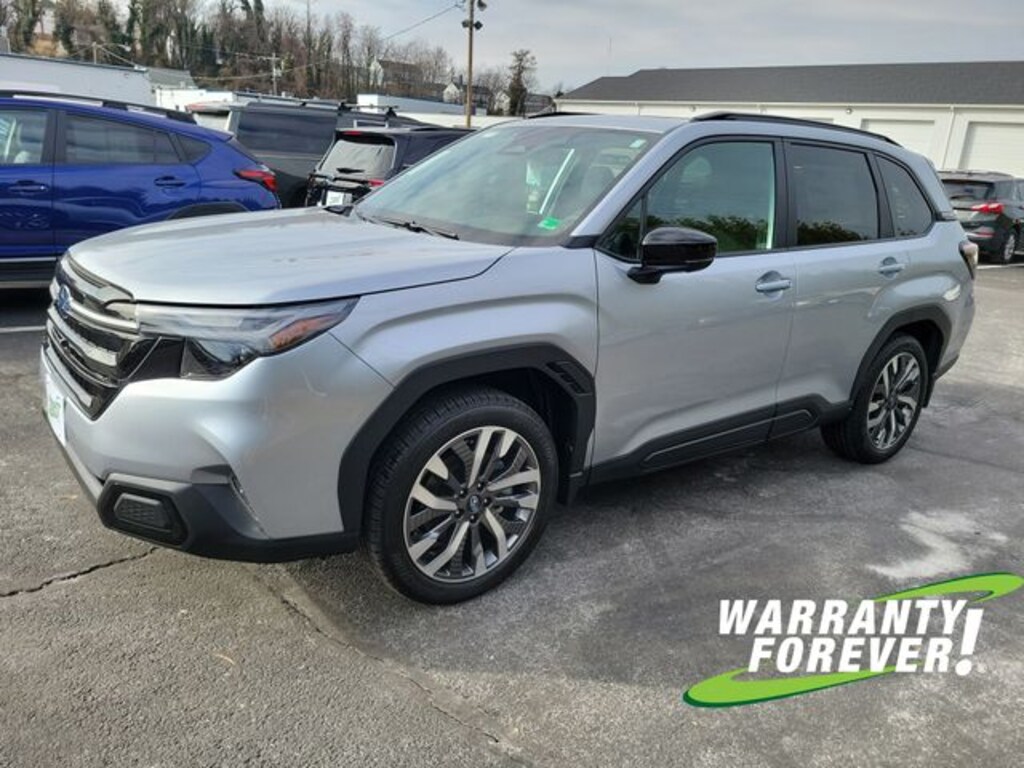 **WARRANTY FOREVER!**, Forester Touring, 4D Sport Utility, 2.5L 4-Cylinder DOHC 16V, Lineartronic CVT, AWD, Ice Silver Metallic, Touring Black w/Perforated Leather-Trimmed Upholstery, 11 Speakers, All-Weather Floor Liners, Auto High-beam Headlights, Emergency communication system: MySubaru Companion (5-years free), Exterior Parking Camera Rear, Heads-Up Display, Heated and Ventilated Front Bucket Seats, HVAC memory, Memory seat, Perforated Leather-Trimmed Upholstery, Power Liftgate, Power moonroof: Panoramic, Radio: Subaru 11.6" Multimedia Navigation System, Rear Bumper Protector Mat, Ventilated front seats.