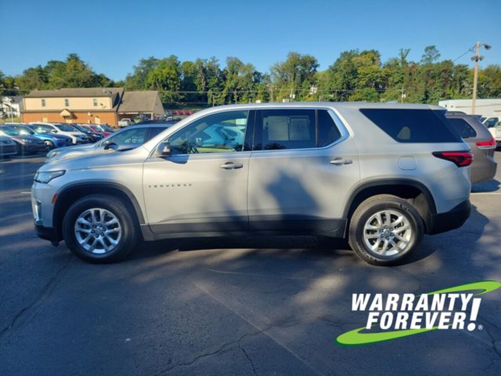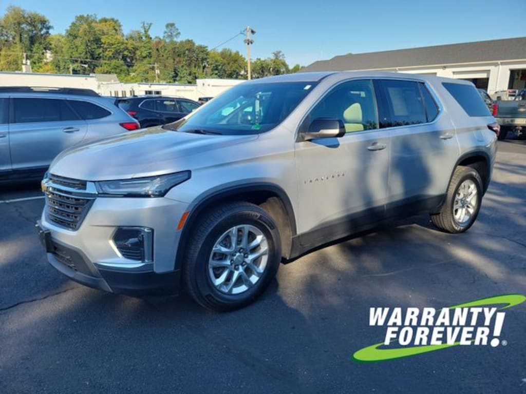 CARFAX One-Owner. Clean CARFAX. Silver Ice Metallic 2022 Chevrolet Traverse LS AWD 9-Speed Automatic 3.6L V6 SIDI VVT **WARRANTY FOREVER!**, **ONE OWNER**, ** ACCIDENT FREE CARFAX REPORT **, Completely Detailed, Recent Oil Change, Multi Point Inspection, Traverse LS, 4D Sport Utility, 3.6L V6 SIDI VVT, 9-Speed Automatic, AWD, Silver Ice Metallic, Jet Black/Chai Cloth, Front License Plate Bracket Mounting Package, Preferred Equipment Group 1LS.