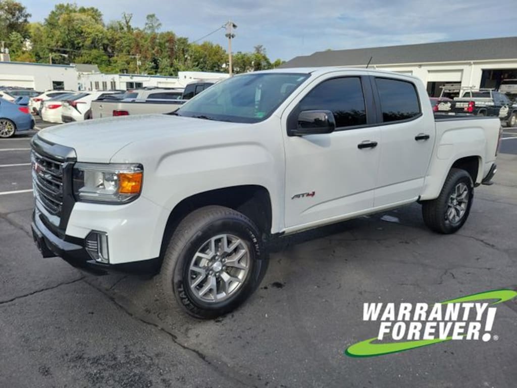 Clean CARFAX. Summit White 2021 GMC Canyon AT4 w/Cloth 4WD 8-Speed Automatic V6 **WARRANTY FOREVER!**, ** ACCIDENT FREE CARFAX REPORT **, Completely Detailed, Recent Oil Change, Multi Point Inspection, Canyon AT4 w/Cloth, 4D Crew Cab, V6, 8-Speed Automatic, 4WD, Summit White, Jet Black/Kalahari Cloth, Hitch Guidance, Preferred Equipment Group 4SB, Tow/Haul Mode, Trailering Package.