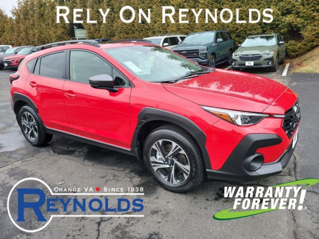 CARFAX One-Owner. Clean CARFAX. Pure Red 2025 Subaru Crosstrek Premium AWD Lineartronic CVT 2.5L 4-Cylinder DOHC 16V **WARRANTY FOREVER!**, **SUNROOF/MOONROOF**, **ONE OWNER**, ** ACCIDENT FREE CARFAX REPORT **, **STILL UNDER FACTORY WARRANTY**, Completely Detailed, Recent Oil Change, Multi Point Inspection, Crosstrek Premium, 4D Sport Utility, 2.5L 4-Cylinder DOHC 16V, Lineartronic CVT, AWD, Pure Red, Black w/Cloth Upholstery, 10-Way Power Driver's Seat, All-Weather Package, Auto-Dimming Mirror w/Compass & HomeLink, Blind Spot Detection (BSD), BSD/RCTA & All Wthr Pkg & Pwr Dr. Seat & Pwr Moonrf, Convenience Package #2, Dual-Mode Heated Front Seats, Heated Power Exterior Mirrors, Power Moonroof, Rear Bumper Cover, Rear Cross-Traffic Alert (RCTA) System, Splash Guards, Windshield De-Icer Wipers.