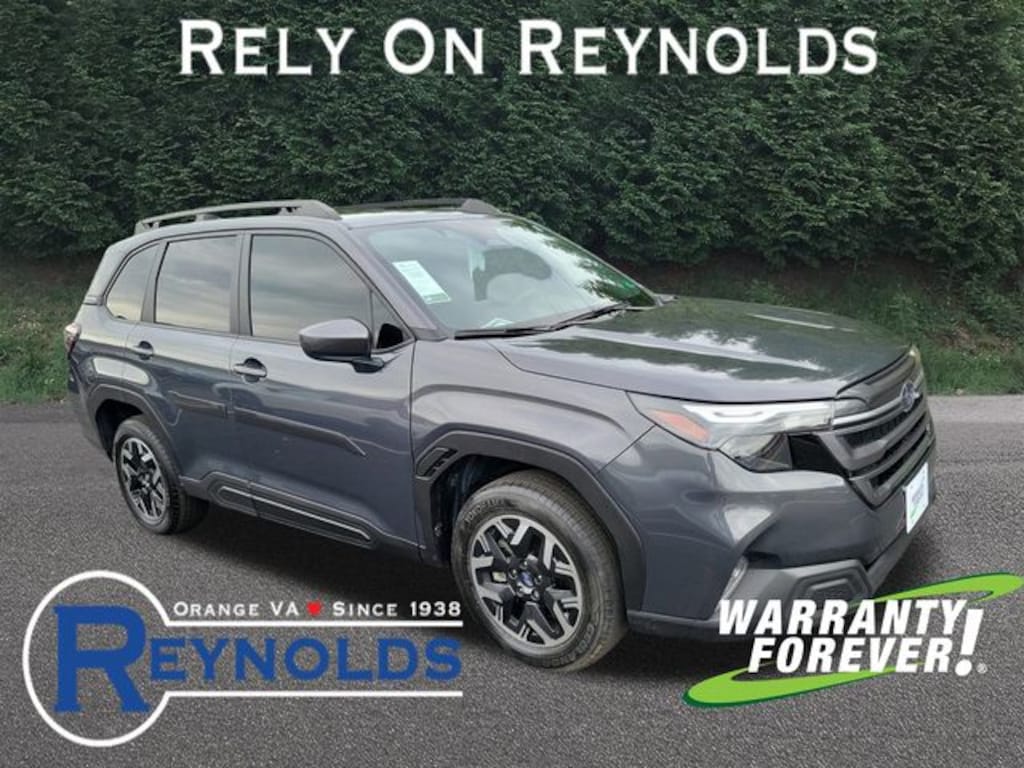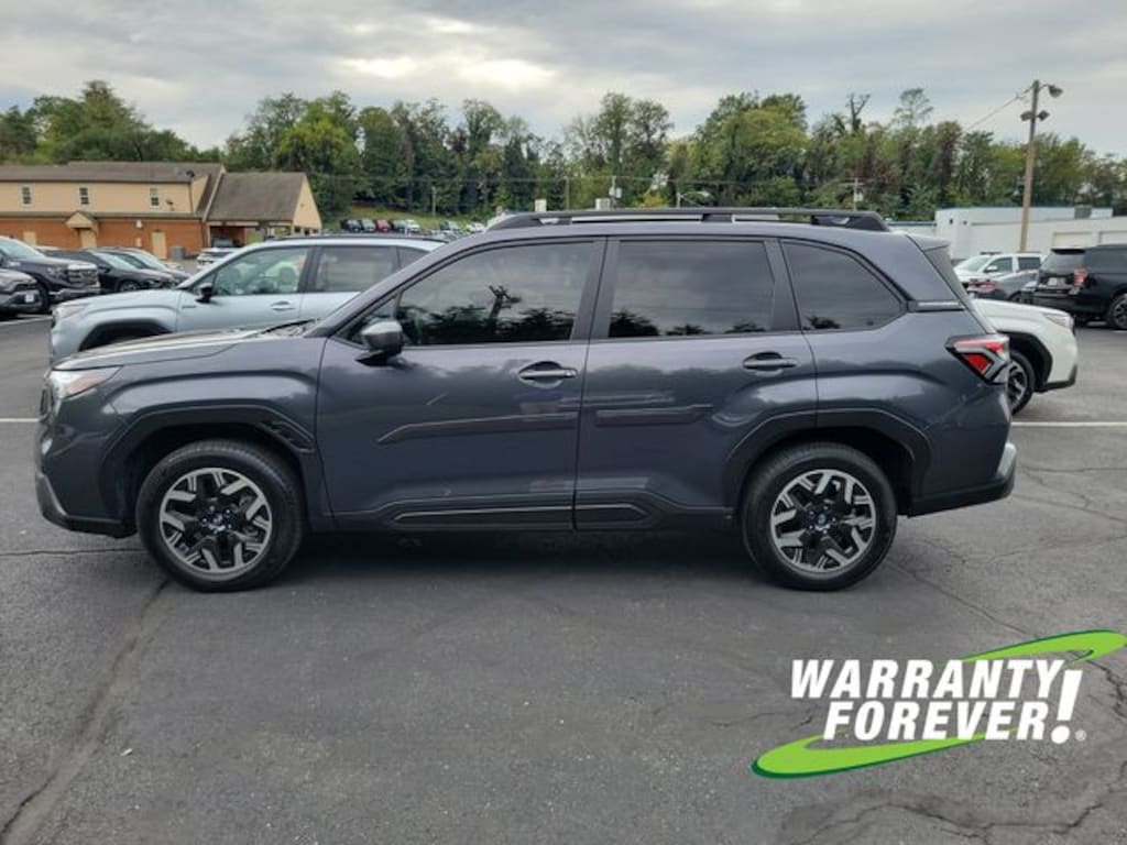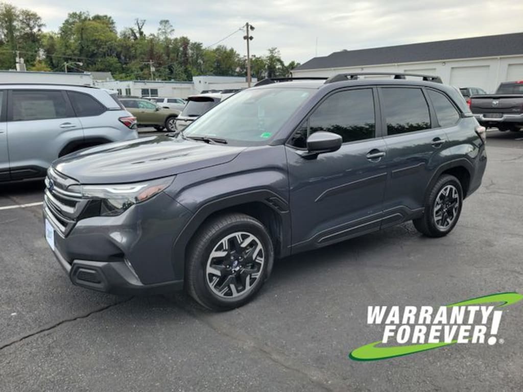CARFAX One-Owner. Clean CARFAX. Magnetite Gray Metallic 2025 Subaru Forester Premium AWD Lineartronic CVT 2.5L 4-Cylinder DOHC 16V **WARRANTY FOREVER!**, **SUNROOF/MOONROOF**, **ONE OWNER**, ** ACCIDENT FREE CARFAX REPORT **, **STILL UNDER FACTORY WARRANTY**, Completely Detailed, Recent Oil Change, Multi Point Inspection, Forester Premium, 4D Sport Utility, 2.5L 4-Cylinder DOHC 16V, Lineartronic CVT, AWD, Magnetite Gray Metallic, Black Cloth, Automatic Emergency Steering, Blind-Spot Detection (BSD)/RCTA System, Power Rear Gate, Power Rear Gate & Blind Spot Detection w/RCTA.