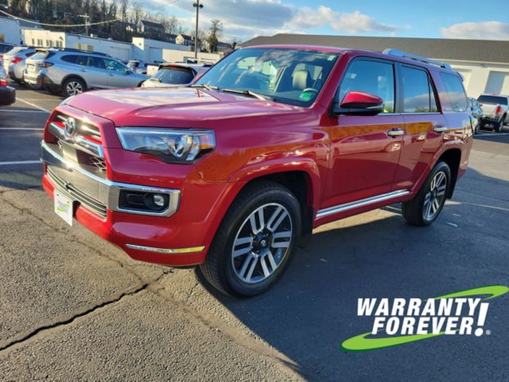 CARFAX One-Owner. Clean CARFAX. Barcelona Red 2024 Toyota 4Runner Limited 4WD 5-Speed with ECT 4.0L V6 DOHC 24V **WARRANTY FOREVER!**, **SUNROOF/MOONROOF**, **LEATHER**, **ONE OWNER**, ** ACCIDENT FREE CARFAX REPORT **, **STILL UNDER FACTORY WARRANTY**, Completely Detailed, Recent Oil Change, Multi Point Inspection, 4Runner Limited, 4D Sport Utility, 4.0L V6 DOHC 24V, 5-Speed with ECT, 4WD, Barcelona Red, Black/Graphite w/Leather Seat Trim, Dual Zone Auto Climate Control, Garage Door Opener, Heated Outside Rear-View Mirrors, Limited Package, Moonroof w/Tilt Up & Slide, Panoramic Back Monitor, Silver Roof Rails.